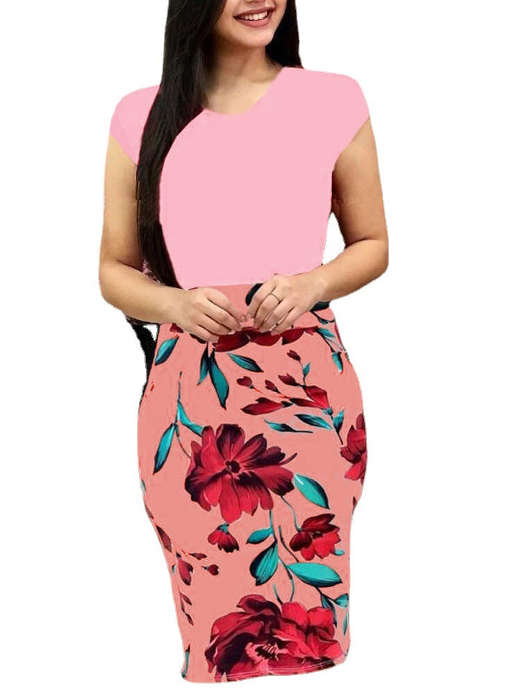 فستان كم قصير طباعة زهرة ميدي